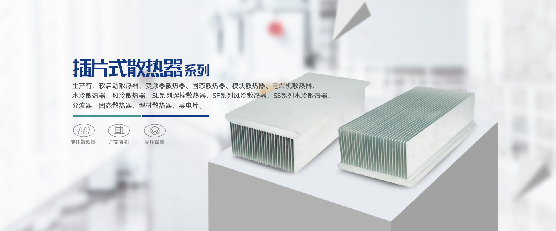 乐清市天开散热器有限公司是集研制、开发、生产散热器,软起动散热器,变频器散热器为一体的专业厂家。自成立以来,所生产的软启动散热器、变频器散热器、固态散热器、模块散热器、电焊机散热器、水冷散热器、风冷散热器、SL系列螺栓散热器、SF系列风冷散热器、SS系列水冷散热器、分流器、固态散热器、型材散热器及导电片等,已广销国内三十多个省市、自治区,赢得了广大用户的认可和信赖。